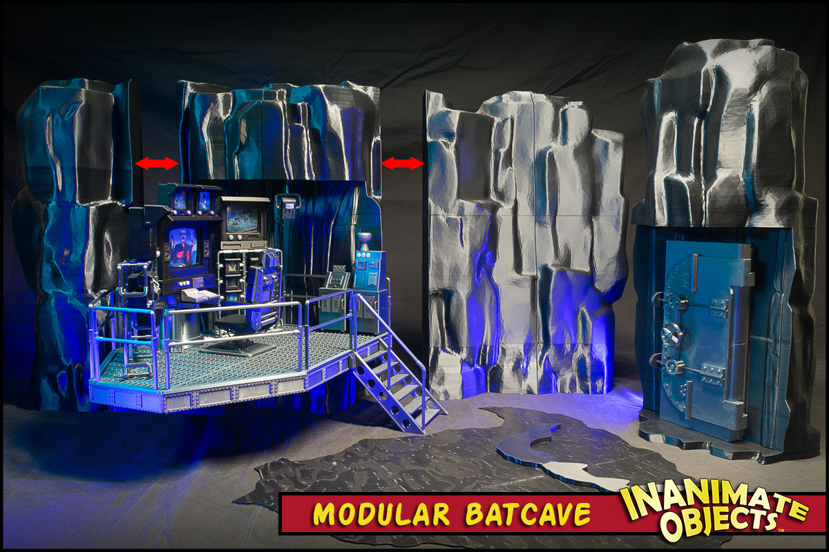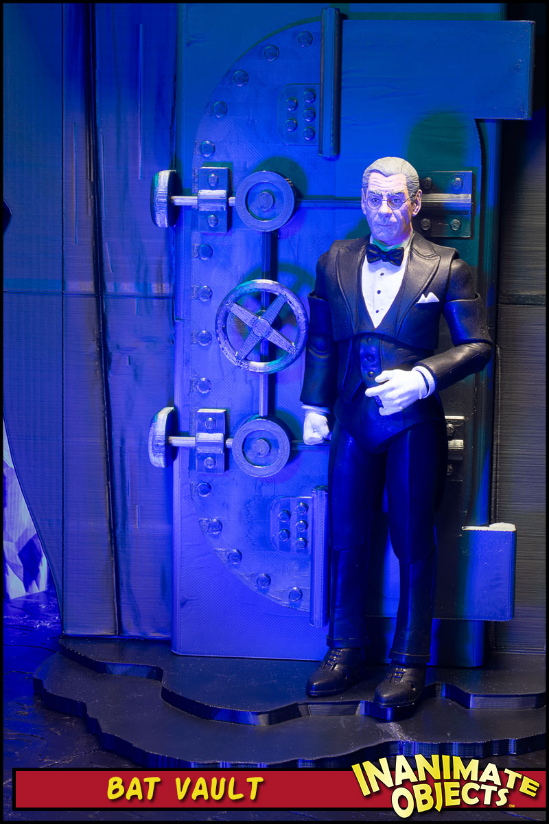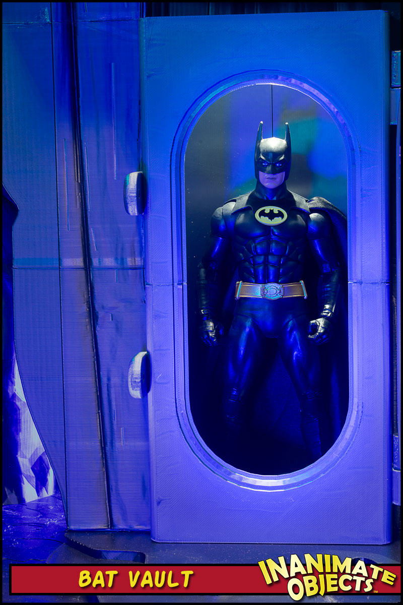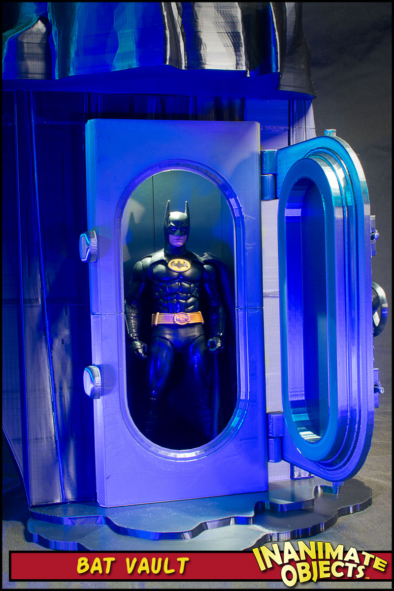 In the film, the Batsuit vault is just below the deck. Why not add that? Again, multiple versions exist. I opted for the one created by Ryan Myers on Cults3D because it was a decent balance between screen accuracy and printing practicality. I used the cave walls to create a pillar, and merged the vault into that. I left a small hole in the back that allows me to drop in a small puck light to illuminate the vault interior.